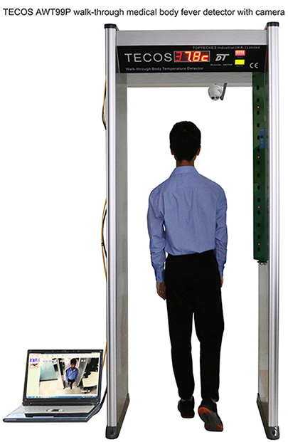 TECOS AWT99P walk-through body temperature detector has a high sensitive detection temperature, detects a wide range and fast speed, doesn't interfere with the measured target and its use is safe.