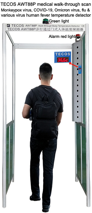AWT88P步行通过门式医用人体温度探测器 / 步行通過門式醫用人體溫度探測器探測Omicron奥密克戎病毒及JN.1病毒和COVID-19新冠病毒及登革熱病毒及Ebola埃博拉病毒和其他各種流感與病毒人發燒溫度,遇發燒病人,儀器立即提示, 中文詳情和產品目錄,請訪問:www.topteches.com