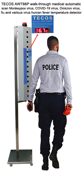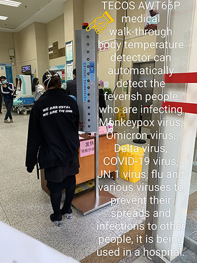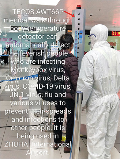 TECOS AWT66P detector can help governments and apparatuses to detect human fevers of infecting Omicron virus, COVID-19 Virus, JN.1 virus, Flu and other viruses to prevent their infections to people.