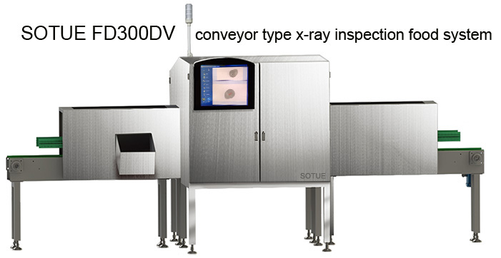 FD300DV x-ray inspection food and medicine system can detect all kinds of packed and no packed products, such as food (for example: bread, fast food, dim sum / snack, beef, fish, chicken, pork, mutton, etc.), medicine, chemical products, etc., can find metal, glass, ceramic, stone, bone, hard rubber, hard plastic in food, medicine and chemical products and so on, and can provide excellent product integrity detection and identify product defects etc..
