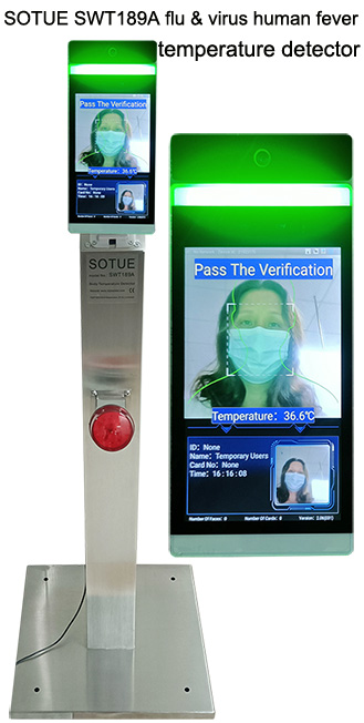 SOTUE SWT189A medical AI face recognition body temperature detector can automatically detect fever temperatures of all patients such as detecting fever temperatures of Omicron virus patients, Delta virus patients, COVID-19 virus patients, Ebola virus patients, Dengue Fever patients, Monkeypox and JN.1 virus patients, various flu patients and all other virus patients. It can also detect normal human temperatures. It can detect & find a fever patient who is caused by virus or flu.